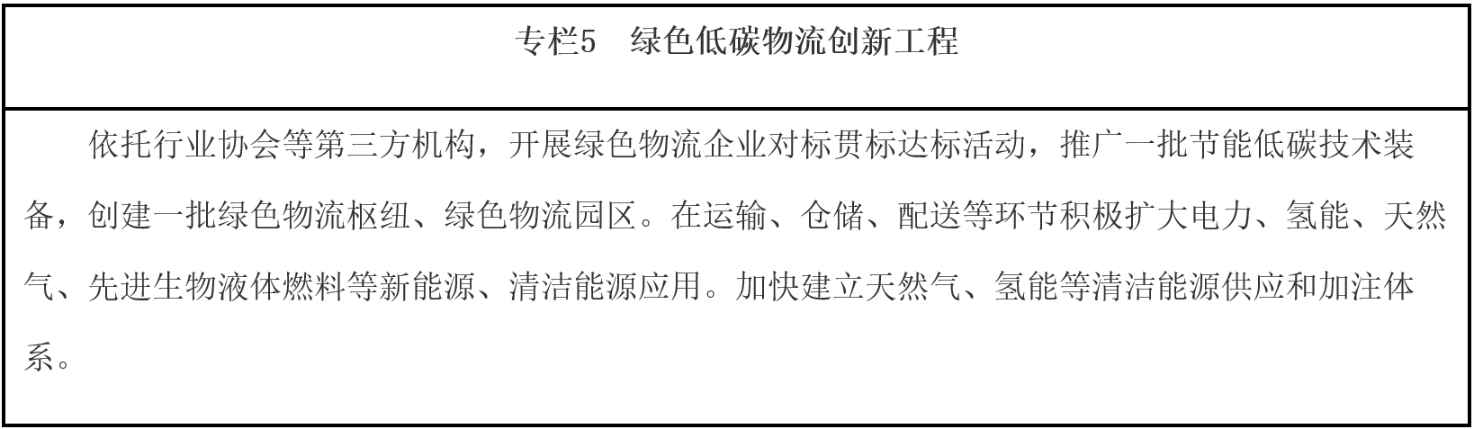 深入推進(jìn)物流領(lǐng)域節(jié)能減排。加強(qiáng)貨運(yùn)車輛適用的充電樁、加氫站及內(nèi)河船舶適用的岸電設(shè)施、液化天然氣(LNG)加注站等配套布局建設(shè),加快新能源、符合國(guó)六排放標(biāo)準(zhǔn)等貨運(yùn)車輛在現(xiàn)代物流特別是城市配送領(lǐng)域應(yīng)用,促進(jìn)新能源叉車在倉(cāng)儲(chǔ)領(lǐng)域應(yīng)用。繼續(xù)加大柴油貨車污染治理力度,持續(xù)推進(jìn)運(yùn)輸結(jié)構(gòu)調(diào)整,提高鐵路、水路運(yùn)輸比重。推動(dòng)物流企業(yè)強(qiáng)化綠色節(jié)能和低碳管理,推廣合同能源管理模式,積極開(kāi)展節(jié)能診斷。加強(qiáng)綠色物流新技術(shù)和設(shè)備研發(fā)應(yīng)用,推廣使用循環(huán)包裝,減少過(guò)度包裝和二次包裝,促進(jìn)包裝減量化、再利用。加快標(biāo)準(zhǔn)化物流周轉(zhuǎn)箱推廣應(yīng)用,推動(dòng)托盤循環(huán)共用系統(tǒng)建設(shè)。