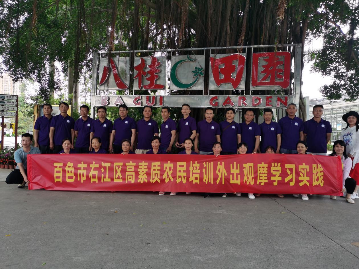 ????????近日,廣西百色益嘉職業(yè)技能培訓學校組織右江區(qū)高素質農民培訓班學員共30人到南寧市八桂田園現代農業(yè)科技觀光園、南寧市美麗南方田園綜合體現代農業(yè)科技觀光園參觀學習活動。