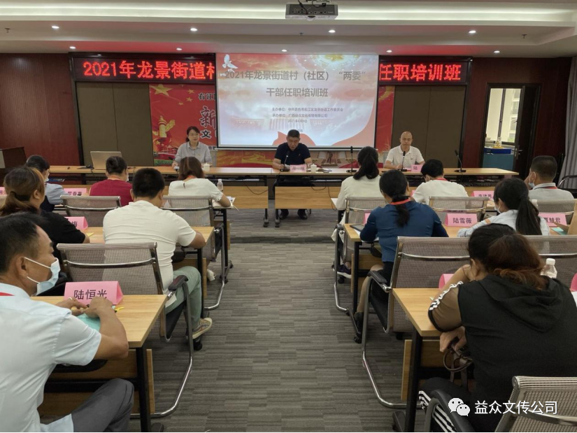 ????????進一步提高新一屆村(社區(qū))“兩委”干部政治素養(yǎng)和工作能力,6月9日,由百色市右江區(qū)龍景街道辦事處主辦,廣西益眾文化傳媒有限公司承辦的2021年龍景街道村“兩委”干部任職培訓班在邏索社區(qū)順利開展,來自右江區(qū)各村(社區(qū))黨支部委員、村(居)民委委員參加本次培訓。