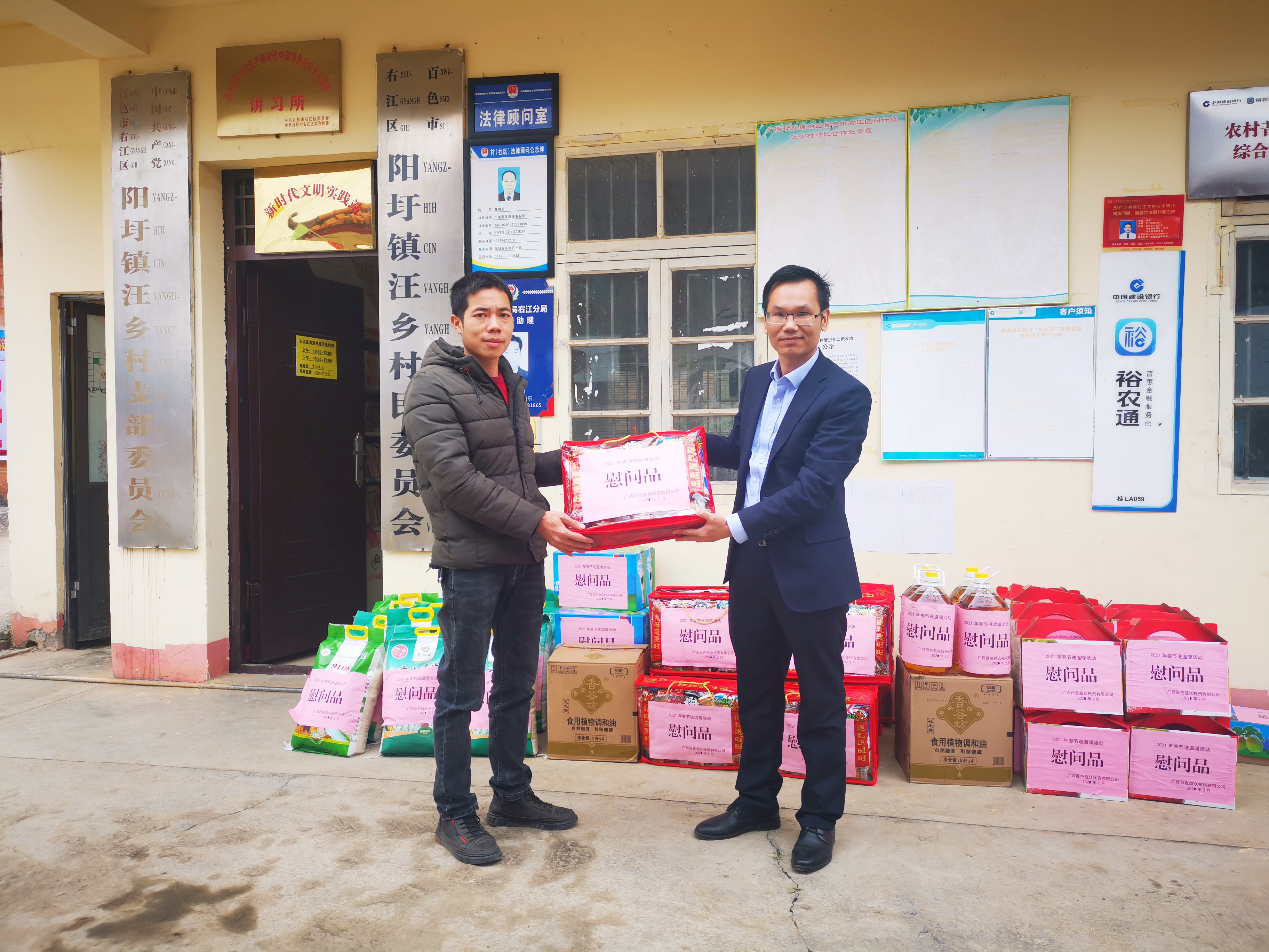 ????????春節(jié)將至,作為右江區(qū)陽(yáng)圩鎮(zhèn)汪鄉(xiāng)村的幫扶單位,益眾公司始終牽掛著汪鄉(xiāng)村村民的冷暖。2月3日,公司領(lǐng)導(dǎo)帶隊(duì)赴汪鄉(xiāng)村開展春節(jié)節(jié)前送溫暖慰問活動(dòng)。