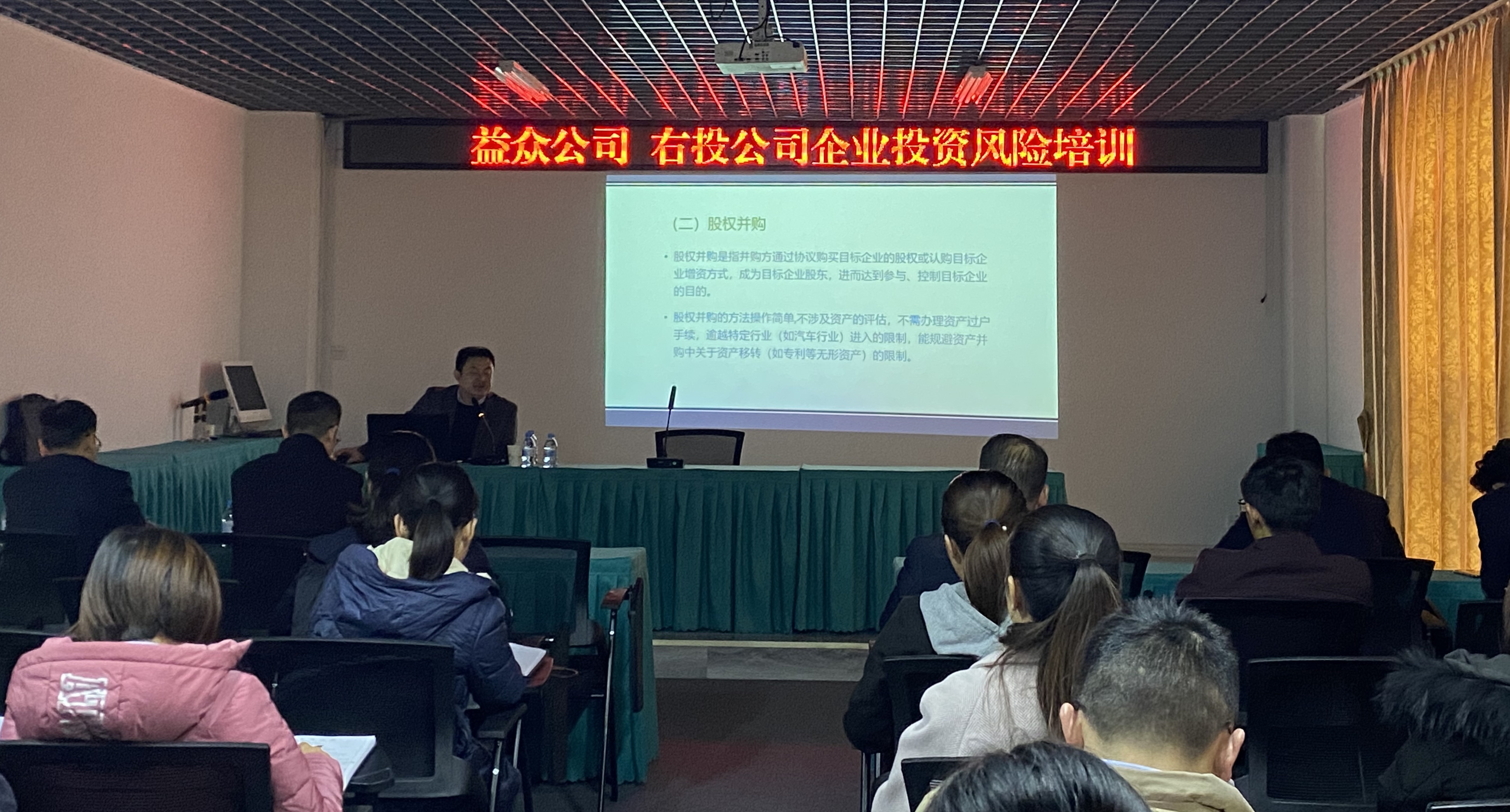 ????????同時,公司領(lǐng)導在培訓會上強調(diào),“投資無小事,風控是大事”,各部門、子公司要以本次培訓為契機,深入組織投資風險管控學習,進一步完善公司相關(guān)制度和投資風險管控體系,把強化投資風險管理作為下一步公司投資管理制度建設(shè)的重點工作來抓;切實增強公司人員相關(guān)法律法規(guī)知識,提高工作的實操水平,有效推進公司工作。