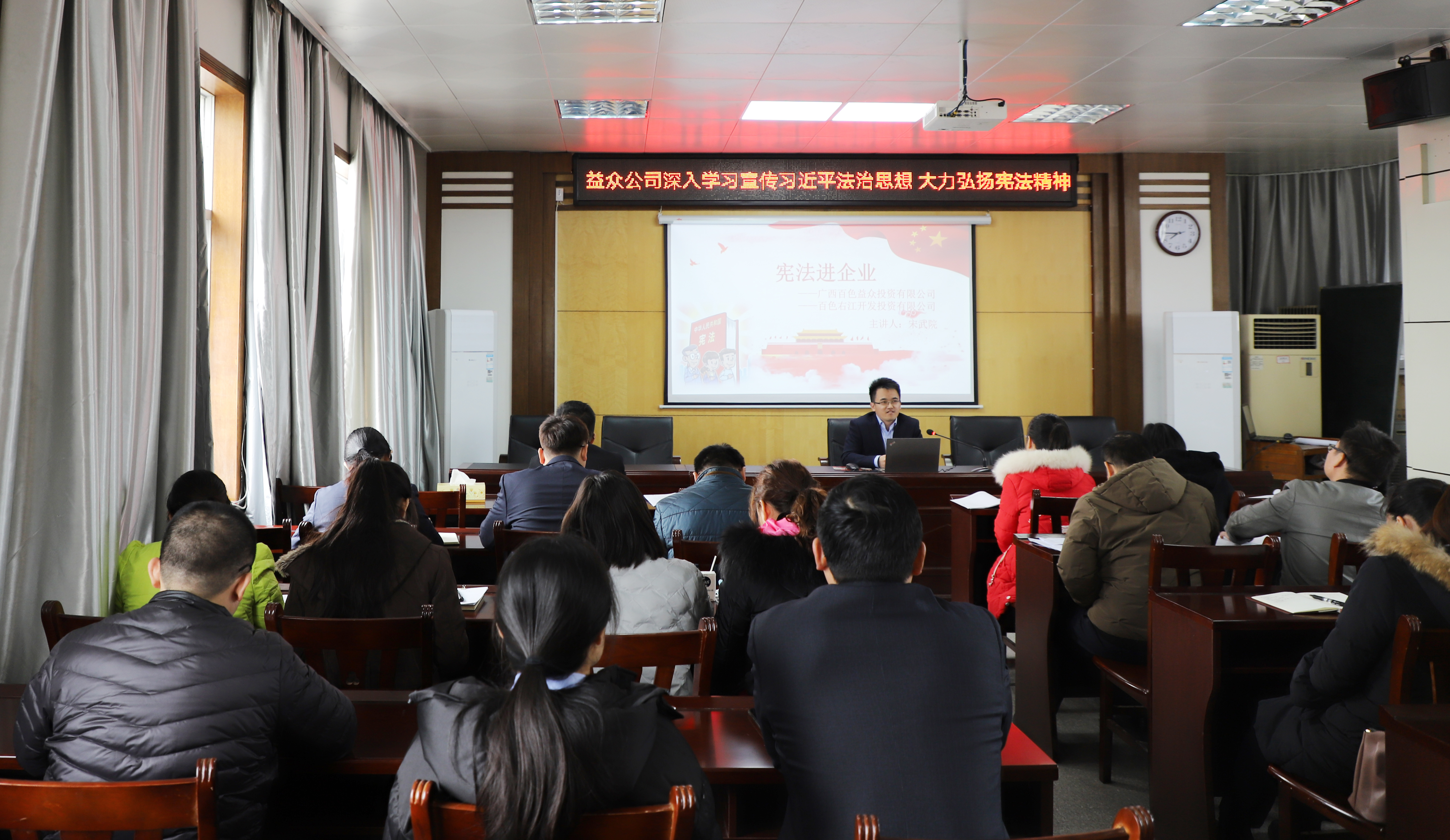 ????????為貫徹落實2020年百色市右江區(qū)“憲法宣傳周”活動的有關(guān)工作部署,營造良好的法治氛圍,弘揚憲法精神、維護憲法權(quán)威,按照《右江區(qū)2020年憲法進機關(guān)活動方案》要求,近日,益眾公司黨支部組織領(lǐng)導(dǎo)干部、黨員職工開展“憲法進企業(yè)”學(xué)習(xí)宣傳活動,深入學(xué)習(xí)宣傳習(xí)近平法治思想,大力弘揚憲法精神,積極引導(dǎo)員工尊法、學(xué)法、守法、用法,自覺尊崇憲法、維護憲法,深入推進全面依法治企進程。
