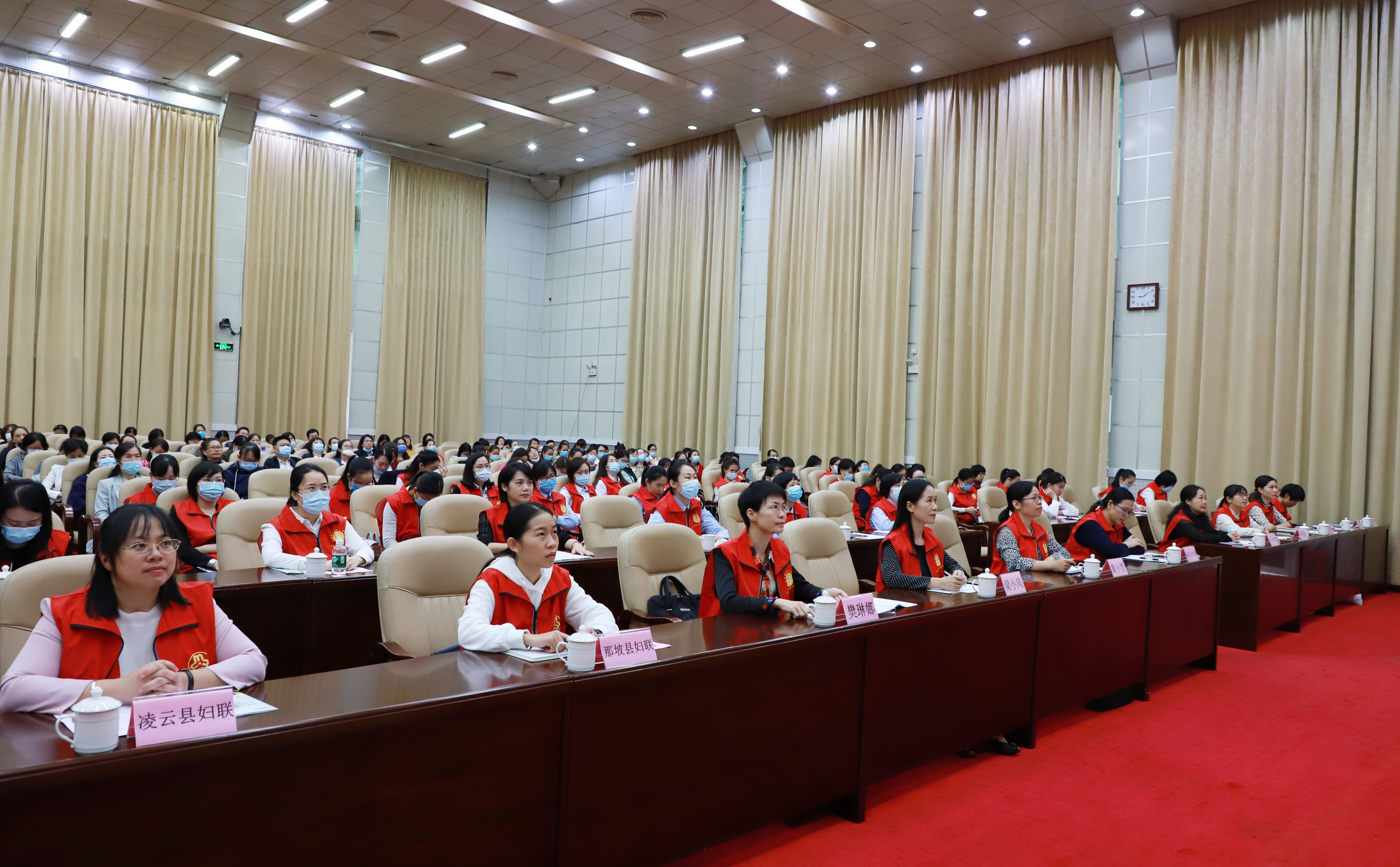 與會領(lǐng)導(dǎo)給“百色市環(huán)保媽媽志愿服務(wù)隊”“百色市新時代文明實踐文秀巾幗