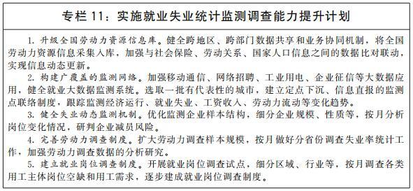 完善就業(yè)失業(yè)統(tǒng)計監(jiān)測調(diào)查體系。加快構(gòu)建系統(tǒng)完備、立體化的就業(yè)失業(yè)監(jiān)測網(wǎng)絡(luò),實現(xiàn)勞動力市場、企業(yè)用工主體和勞動者個體全覆蓋,全面反映就業(yè)增長、失業(yè)水平、市場供求狀況。完善就業(yè)統(tǒng)計指標體系和調(diào)查統(tǒng)計方法,探索進行就業(yè)質(zhì)量、就業(yè)穩(wěn)定性等方面的分析。推進大數(shù)據(jù)在就業(yè)統(tǒng)計監(jiān)測領(lǐng)域的應(yīng)用。